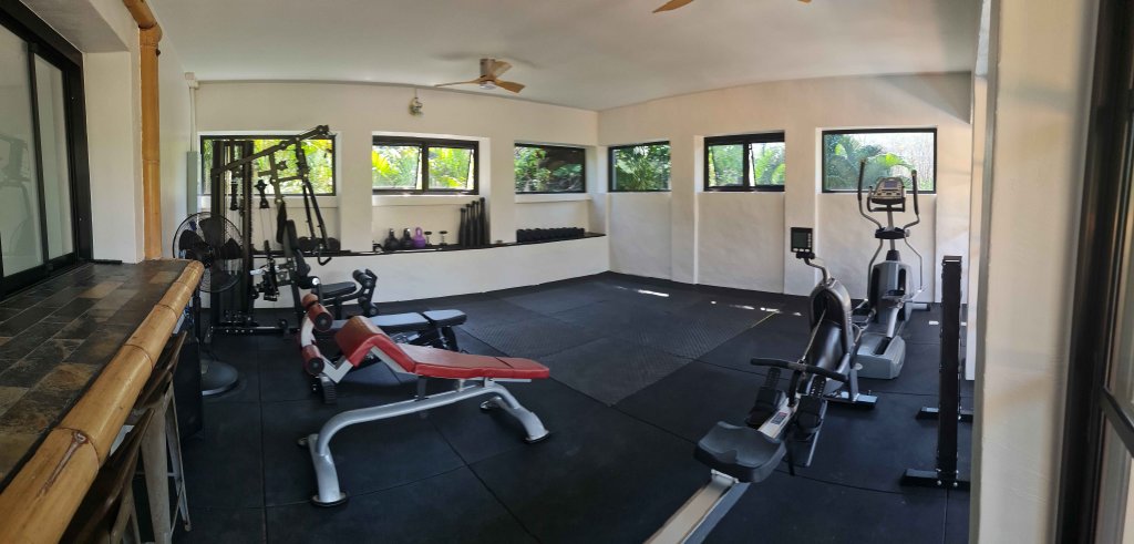 The spacious, air-conditioned layout ensures comfort even during intense sessions, while large windows frame breathtaking jungle and mountain scenery—making every workout feel refreshing and motivating.